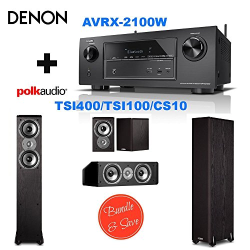 - You Will Rececive : 1 Denon AVR-X2100W 7.2 Channel Full 4K Ultra HD A/V Receiver with Bluetooth and Wi-Fi + 2 Polk Audio TSi400 Speaker - 2-way - Black + Polk Audio TSi100 Bookshelf Speakers (Pair Black) + Polk Audio CS10 Center Channel Speaker (Single Black)