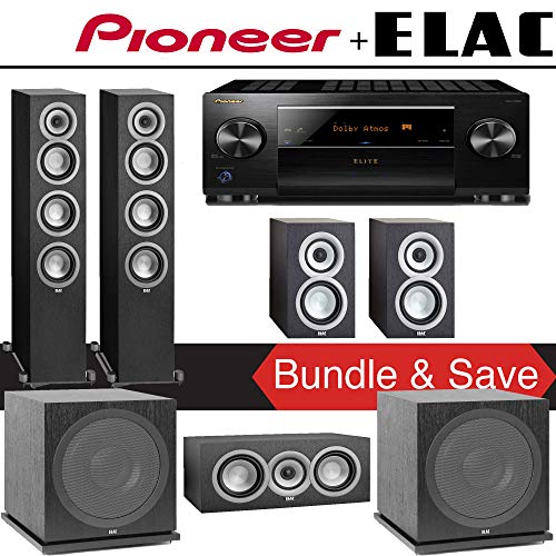 - You will receive: 2 FS-U5 Floorstanding Speakers + 1 Elac CC-U5 Center Speaker + 4 Elac BS-U5 Speaker + 1 Pioneer VSX-LX302 A/V Receiver