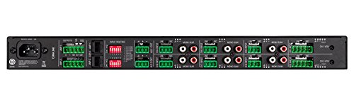 - Specifications: Maximum Output Power: 40 W per channel into 4 Ohms or 8 Ohms, 1 kHz, ≤ 0.5% THD. Insertion Loss: 1 dB maximum for 70 and 100 V outputs. Continuous Power: 5 W per channel. Line Output Level: 5.0 V RMS into 10 kOhms. Input Sensitivity: To obtain full rated power at 8 Ohms (or 5 VRMS to line output). Mic Input: 3 mV RMS. Line Input: 775 mV RMS. RCA Input: 300 mV RMS. Number of Channels: Input: 8, Output: 2.