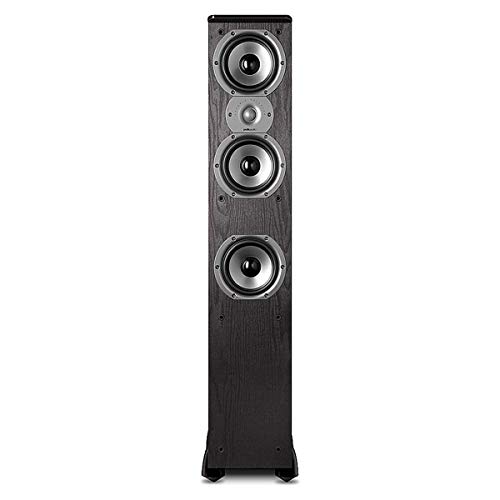 Pair of TSi300 3-Way Tower Speakers with Two 5-1/4" Drivers TSi300 Features:Unlike other speakers in this price range TSi enclosures are constructed of extensively braced solid MDF with 3/4-inch baffles. This virtually eliminates internal resonances and damps energy-stealing vibrations for more efficient operation and more transparent sound.Beautiful pewter accents a high gloss piano-finish black top plate and your choice of stylish black or cherry wood-grain finishes make TSi speakers a part of your decor.Polks proprietary patented Dynamic Balance technology allows the engineers to design out distortion-causing driver and system resonances so you only hear the good sounds.Klippel motor optimization uses laser measurement technology to ensure a smooth excursion path at either end of the volume spectrum for uniform performance at both low and high volumes.TSi design combines smaller drivers (for more overall driver area with less driver mass) and narrow baffle geometry (taking up less than one square foot of floor space) for wider range and more spacious soundstaging so every seat in the house hears a prime performance.Unlike horns or metal domes silk dome tweeters deliver clear and detailed highs without fatigue even at high volume.Durable efficient and tuned with the Dynamic Balance process TSi Series polycarbonate cones produce smooth natural sound.Surprisingly deep musical bass response thanks to Polks critically tuned flared port venting system which minimizes port noise ("chuffing") and smooths the turbulence of port air flow to reveal big full-bodied bass that blends effortlessly with the speakers overall dynamics.All Polk loudspeakers are timbre-matched within their series designed with the same components throughout to achieve seamless speaker-to-speaker blending effects in multi-channel systems.The high efficiency design results in sound that's spacious and clear warm and realistic when combined with practically any electronics even the most modestly-