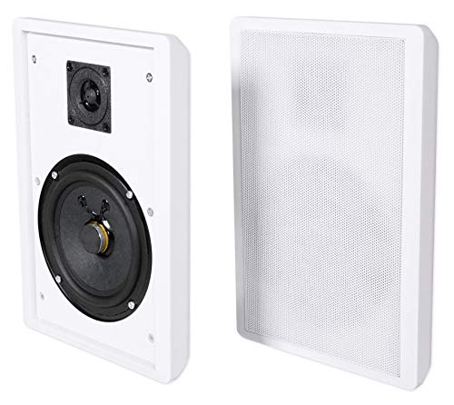- Molded speaker wire groove makes it easy to run speaker wires behind the speaker . Beautiful sleek design is perfect for a living room, bedroom, kitchen, restaurant, and more. Product Dimensions: 10.8" x 7.3" x 1.38" inches. Product Weight: 2 Lbs. (Per Speaker).