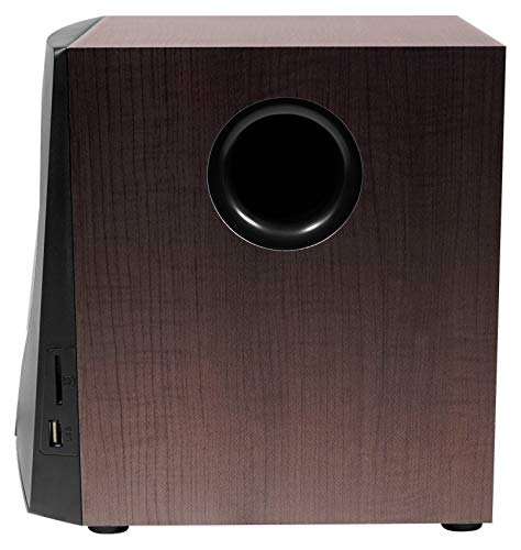 - Fully wooden enclosure for pure audiophile sound quality. Beautiful designer grade wood enclosure with gold finish looks great in any room or office. Convenient key controls on front panel. Full function remote control . Subwoofer Dimensions (W x H x D): 7.88" x 9.06" x 9.06" inches. Speaker Dimensions (W x H x D): 3.75" x 5.9" x 3.55" inches (Per Speaker). Unit Weight: 9.04 Lbs.. Shipping Weight: 11.03 Lbs.