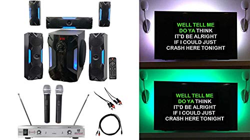 - Package Includes: Rockville HTS56 1000 Watt 5.1 Channel Home Theater System with Bluetooth and USB + NYC Acoustics USB LED Light Strip Kit to Backlight Your TV or Monitor + Rockville RWM1202VH VHF Dual Channel Handheld Wireless Microphone System + Rockville RCDR10B 10' Nickel-Plated Dual RCA to Dual RCA Cable + Rockville RNRMR10 10' Nickel-Plated 3.5mm 1/8" TRS to Dual RCA Cable