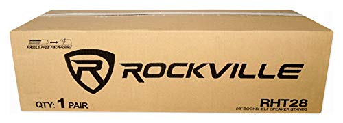 - (2) Rockville RHT28 28" Inch Bookshelf Speaker Stands Surround Sound Home Theater. Pair Rockville RHT28 high performance wood speaker stands. Finished with premium furniture-grade paint that will not crack, chip, or peel.. Made from high quality medium density fiber core to minimize resonance.