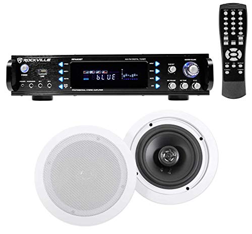- Package Includes : Rockville RPA60BT 19" 1000 Watt 2-Channel USB and Bluetooth Karaoke Receiver/Amplifier/Mixer + Pair of Rockville HC655 6.5" 500 Watt In-Ceiling Home Theater Speakers