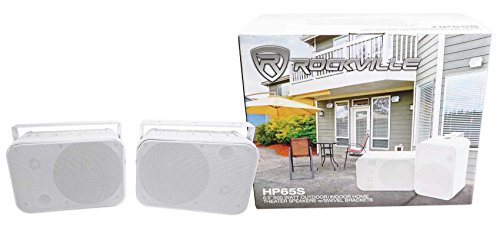 - Pair of Rockville HP65S 6.5" White 500 watt outdoor/ indoor home theater speakers with swivel bracket.