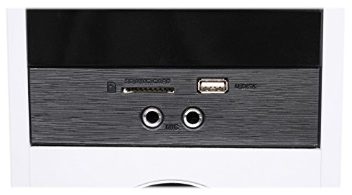 - Cabinet material: Top quality MDF (0.472" inch thick high-grade MDF). (2) pairs of RCA inputs. (1) 3.5MM aux input. (1) Optical input. Front panel USB and SD inputs. (2) ¼" Mic inputs for karaoke (with echo control and mic volume control). (2) RCA outputs make the system expandable. Digital display on front panel with brightness control. Incredible design with silver plates surrounding each speaker and modern furniture style look.