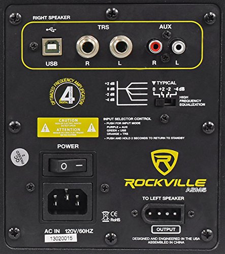 - Rockville ASM5 5" 2-Way 200 Watt Active/Powered Pair of USB Studio Monitor Speakers. Two-Way Active Studio Monitor Speaker System. Full Range Class D Amplifier Circuitry. LED Power on Indicator on Multi function Rotary Front Volume Control. Ferro Fluid Enhanced 1" Neodymium Soft Dome Tweeter. Talc Filled, Injection Molded Graphite Composite Cone Woofer. Curved Front Bexel Design Eliminates Standing Wave Distortion.