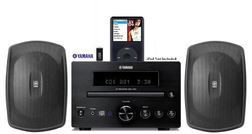 Yamaha Natural Sound Micro Home Theater Receiver Sound System with Integrated iPod Docking Station, High Quality CD Player, USB Port for Flash Drive & All Weather Indoor / Outdoor Speakers - 50ft of 16 AWG Speaker Wire Included